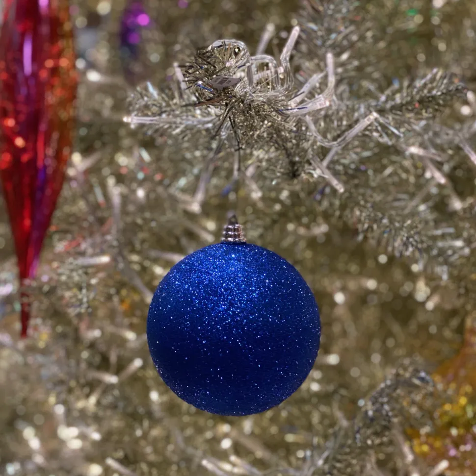 Add a splash of sparkle to your tree, wreath, or garland with this blue glitter ball ornament. Pairit with red, green, gold and silver to capture the look of a Christmas Nutcracker theme and then transition it into your 4th of July and other patriotic holiday decor.